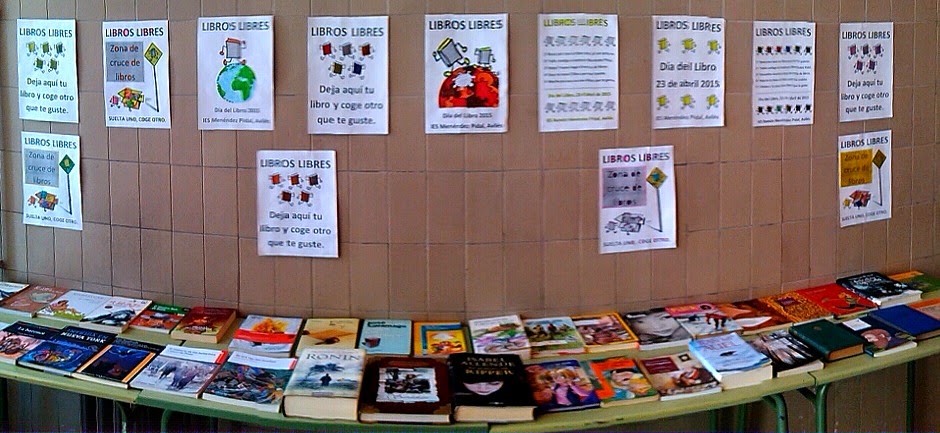 Se ha colocado una zona de intercambio de libros, a la puerta del Departamento de Lengua Castellana y Literatura, con los libros que durante los días pasados han sido donados desinteresadamente por muchos de los componentes de la comunidad escolar.